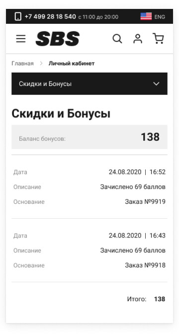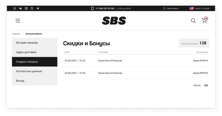 На нашем сайте действует система лояльности. С каждой покупки зарегистрированные пользователи получают баллы на счет в личном кабинете. В последствии этими баллами можно оплатить вплоть до 50% заказа.
